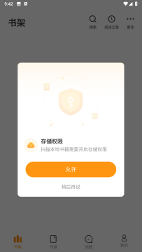 4、然后点击允许开启储存权限,就会读取本地书籍资源,自动导入了。