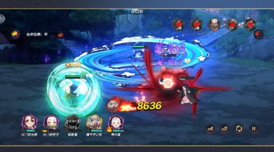 支持升级、升星、装备强化与奥义技能解锁,提升角色战斗力。例如,鬼化-祢豆子可通过“血鬼术”觉醒释放高爆发技能。