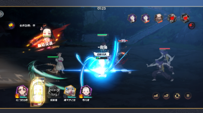 搭配特定角色(如“炭治郎+祢豆子”)激活羁绊加成,提升全队属性或触发特殊技能(如“日轮刀领域”)。