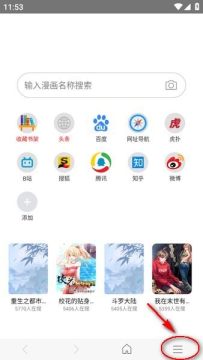 打开免费漫画阅站后,点击右下角三条杠,如图所示;