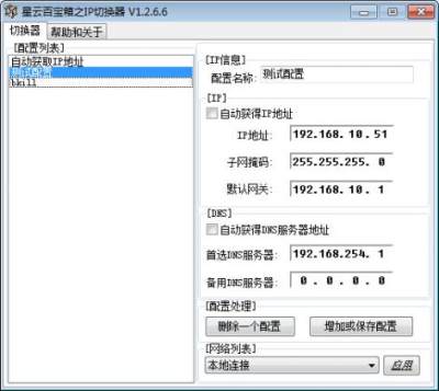 星云百宝箱之IP切换器是一款非常好用的IP切换工具,可以预先设置和保存多个网络配置,通过选择不同配置,来实现IP的快速切换,不再需要手动调整网络配置,方便用户办公、学习、游戏时切换不同的IP来选择适合的网络环境。