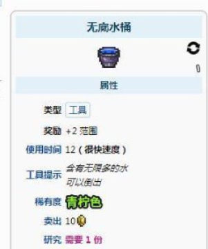 4、无限水桶可以无限制的重复装水,整体的范围、防水速度是高于标准水桶的,价值比标准水桶更高。