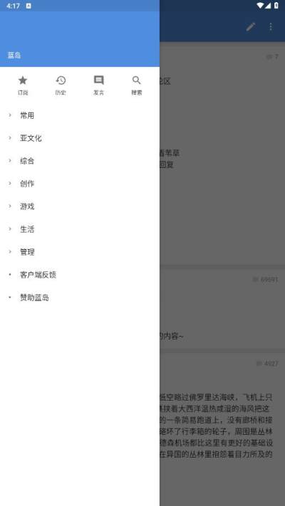 现阶段蓝岛匿名版一共有五个大版块,各自为综合性,二次元,手机游戏,2.5异次元及三次元。