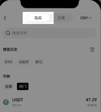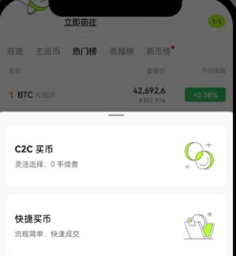 一、打开欧意首页-点击C2C买币-快捷买币-点击购买-选择需要购买的数字资产