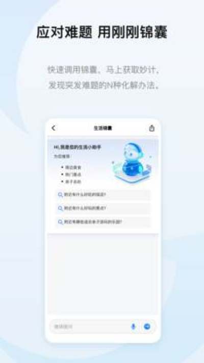 刚刚app是一款人工智能ai助手软件,在这里你可以随时向ai进行提问,快速调用锦囊应对难题,发现突发难题的n种化解办法,使用起来非常简单,对软件感兴趣的话不妨点击下载试试!
