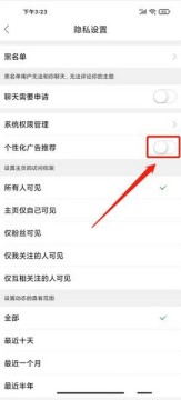 4、进入隐私设置界面,点击【个性化广告推荐】右侧按钮关闭。