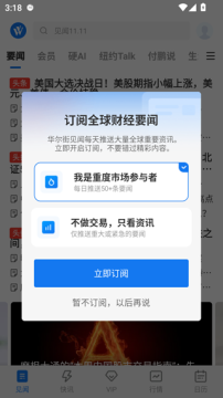 3、见闻早报开启每日视野:专属 “5 分钟晨读” 的见闻早报,帮用户快速深度理解隔夜全球市场动态,内容精悍且重点突出,搭配卡片分享功能,方便用户将关键信息分享至社交平台,轻松开启新一天的金融视野。
