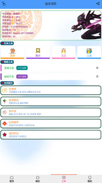 三合一全能聚合:直播、追剧、工具箱三大模块深度整合,告别多应用切换的繁琐。