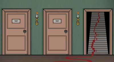 1、延续锈湖标志性的怪诞美学,场景细节中暗藏隐喻,如宣传图中血迹斑斑的阶梯。