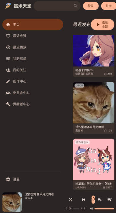 基米天堂里面的歌曲全部都是哈基米音乐,没有其他类型的杂曲干扰。不管是轻快活泼的哈基米旋律,还是温柔舒缓的哈基米曲目,只要是属于这个品类的音乐,在这儿都能找到。不用手动筛选排除其他风格,打开软件就是纯粹的哈基米音乐世界,喜欢哈基米的朋友快来试试。