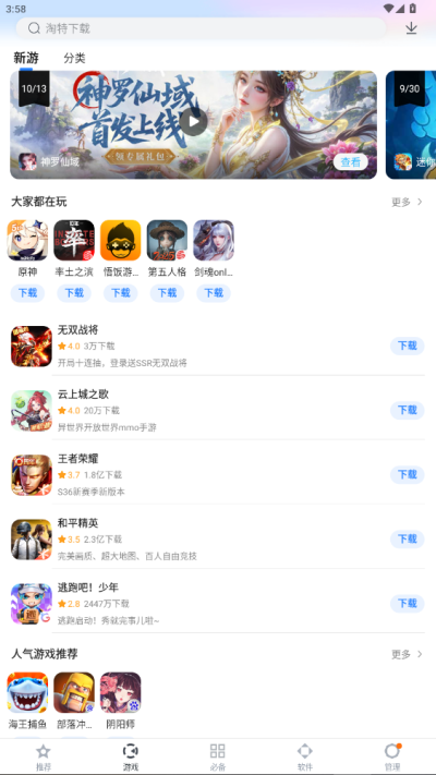 2、不同类型游戏玩家:无论是喜欢角色扮演类的剧情向玩家、动作竞技类的操作向玩家,还是休闲益智类的轻松向玩家,软件覆盖多元类型的游戏资源,搭配精准的智能推荐,能让不同偏好的玩家都找到适合自己的游戏。