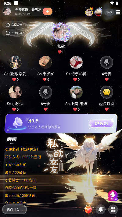 1、不同的语音房间直接进入,参与到房间的互动,每天十分的开心。