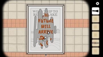 5、在婴儿车旁边的场景里有一张海报,用铲子把海报刮烂,就看到“THE FUTURE WILL ARRIVE”,也就是未来即将到来的意思。然后海报底部会出现一个神秘符号。
