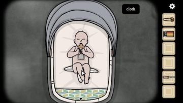 3、然后列车开走,我们用奶瓶给婴儿喂奶,用白布给他当尿布,最后用锉刀挑走尿布丢到旁边的垃圾桶里。