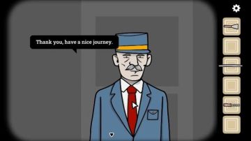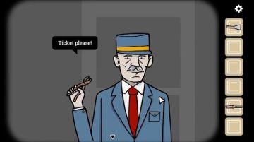 8、点击列车员,会提示我们需要车票。点击列车员右边的口袋,可以获得一枚硬币。