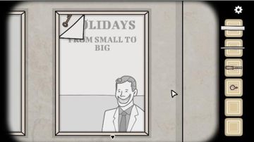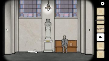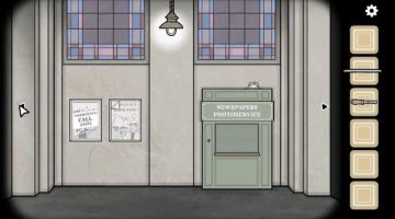 9、去到海报旁边的照相馆,装上把手,拉开帘子,获得报纸。把报纸拿给坐在长椅上的男人,在他看报纸的时候点击他右边的口袋,获得硬币。