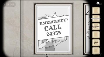 3、回到母女身边,向右切换场景,点击墙上的海报,看到提示“从小到大”,我们按照这个顺序依次点击海报中的物体,完成后在海报左上角得到一把钥匙。