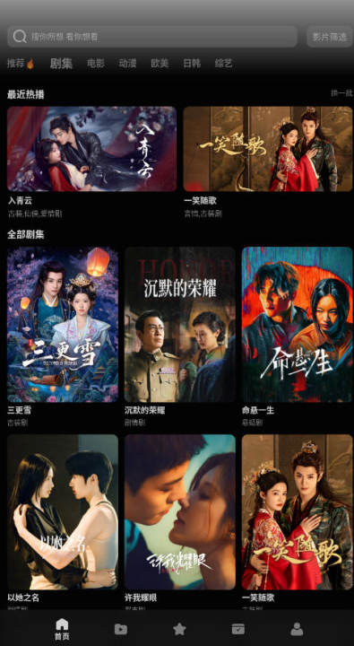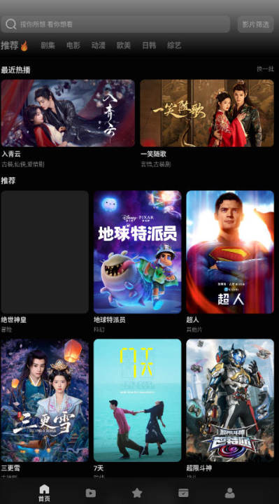 2、在首页浏览推荐的剧集,下滑可以找到更多类目的热门推荐;