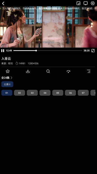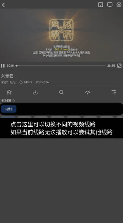 6、点开直接跳转播放,可以调整播放源和观看集数。