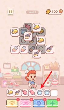 1、打开进入烘焙猫游戏,点击三个相同物品即可进行消除。