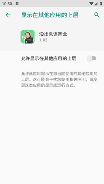 进入手机【设置】→【应用管理】→【没出息语音盒】→【权限管理】→ 开启【悬浮窗】权限。