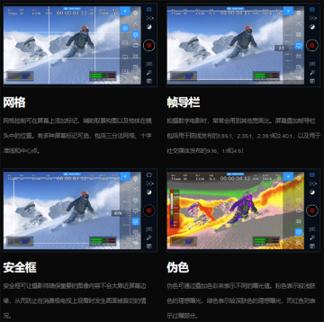 开启或关闭,设有9:16、4:5、1:1、4:3、14:9、1.85:1、2:1、2.35:1、2.39:1、2.4:1宽高比提示。