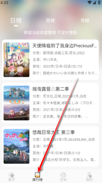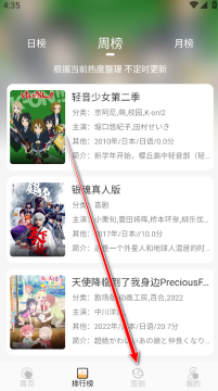 3.点击下方的排行榜,就可以看到根据当前热度整理 不定时更新的日榜、周榜、月榜。