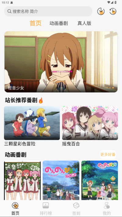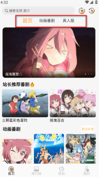 1.打开悠哉云町,可以看到主页主要有动画番剧和真人版。