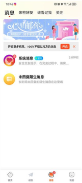 用户点击屏幕下方的消息,可以进入到消息界面,界面内有消息、亲密好友、谁看过我、关注四个功能。