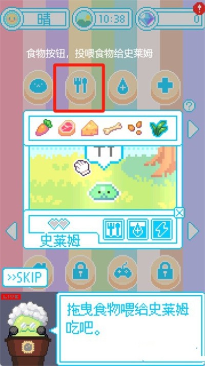1、喂养史莱姆,给它提供不同的食物,观察它如何在不同的环境中成长。