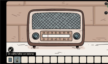 4、在白色门右边的抽屉柜里拿到两节「电池」,先把电池装进对讲机,然后将频道调到4听对讲机里播放的音乐,再点击收音机调整频道至你所听到的音乐频道上(这里要记住频道数字,不同音乐对应不同的频道)。注:组合物品:选择道具-Grab-选择要组合的道具,另外收音机右下方的抽屉里还有一个密码符号