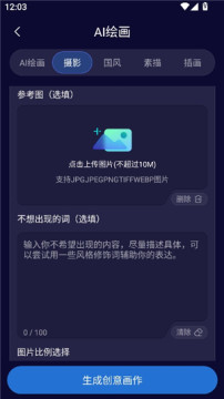 3、还能添加参考图与禁止词,然后点击下方的生成创意画作就可以了。