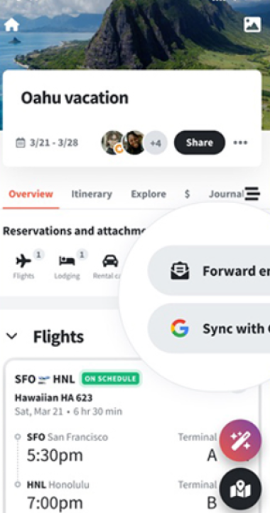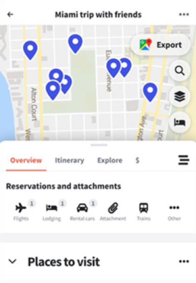 支持通过转发预订邮件或直接连接 Gmail 账户,自动导入航班、酒店、租车等预订信息,无需手动输入订单详情,避免因信息录入繁琐导致的遗漏或错误,大幅提升旅行规划效率,尤其适合预订项目多的复杂行程。