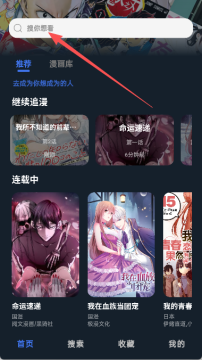 2、输入想要查找的漫画的关键字,比如漫画或作者名称。