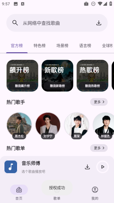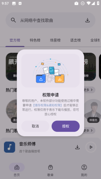 音乐师傅app官方免费版是一款专为音乐爱好者打造的免费音乐搜索与下载工具,集艺人推荐、单曲精选、新歌速递等功能于一体。用户可一键播放或免费下载高音质音乐,无需付费、无广告干扰,覆盖抖音热歌、古风经典、英文榜单等多类型曲库,满足多元化听歌需求。平台以“全免费、高音质、极速下载”为核心,打造纯净流畅的音乐体验。