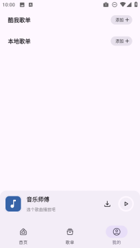 2、接着点击右下角“我的”,点击“+”号添加本地歌单。
