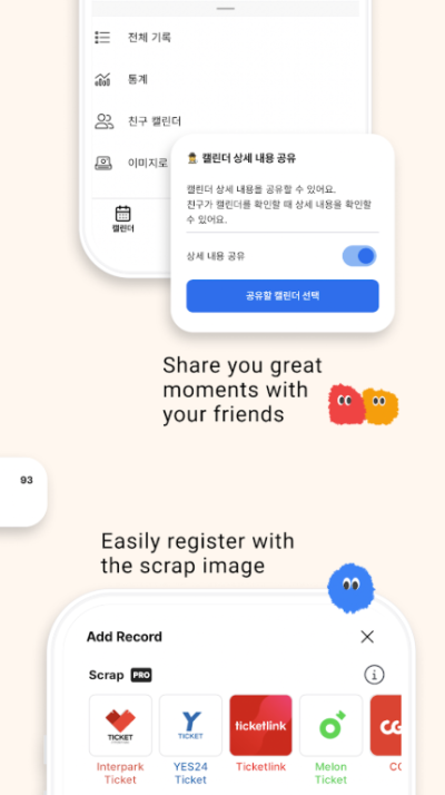 【便捷的门票注册与记录】支持从日历直接选日期注册新门票,同天多张门票可通过长按日期字段或点击顶部门票图标快速添加,操作简单直观,轻松记录每一场文化活动。