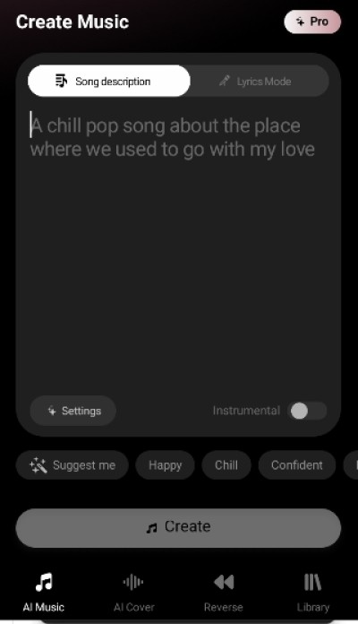 使用MyTunes后,音乐不再是专业人士的专属,现在任何人都能轻松作曲、混音、个性化翻唱。不管您是想用AI 生成歌曲、生成独特的AI 翻唱,还是探索新音色,MyTunes都是您的音乐创作首选 App。