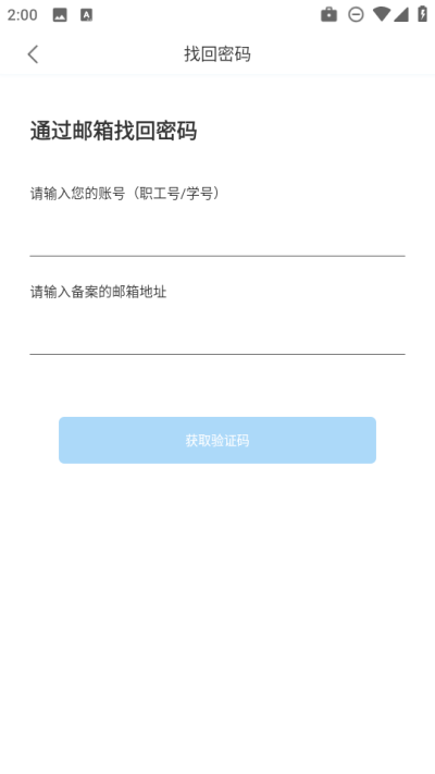 3、然后自定义输入你的正确账号以及邮箱地址,点击【获取验证码】即可。