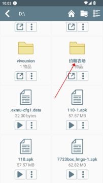 4、使用鼠标导航至D盘,找到名为“约翰农场”文件夹,然后打开并启动“JohansFarm.exe”会黑屏一段时间,请耐心等待;