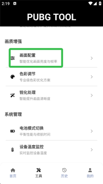 1、进入PUBG画质助手官方正版,来到【工具】页面。