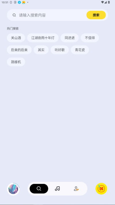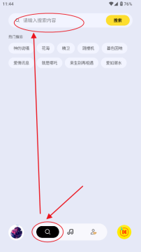 2.点下方的搜索按钮可进入搜索框找歌曲。
