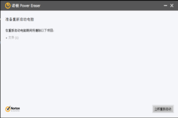 2.默认情况下,诺顿 Power Eraser 会执行 Rootkit 扫描并需要重新启动系统。如果出现要求重新启动电脑的提示,请单击“重新启动”。
