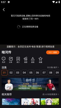 3.进入播放界面,点击右上角的TV按钮,APP将开始搜索可投屏的设备