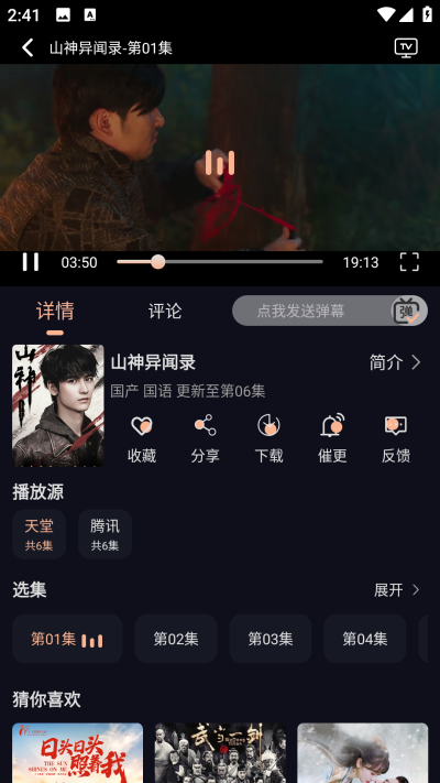 4、找到想看的影视资源就可以进行播放,可以将影视进行下载、收藏以及投屏。