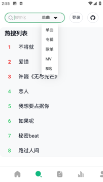 1、软件首页提供了热门歌曲可以直接点击播放。