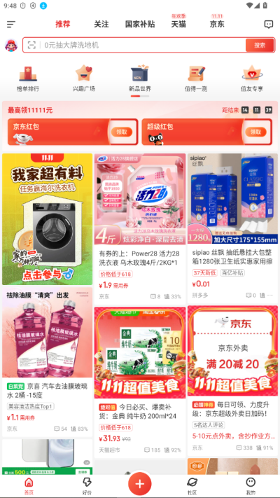 一方面提供日常签到领限时红包福利,红包可直接用于购物抵扣,进一步降低消费成本;另一方面整合大量省钱打折服务与低价商品资源,让用户随时能找到价格更低的商品,购物更省钱。