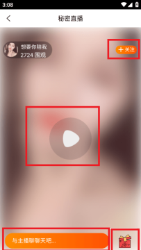 然后直接点击播放按钮,就能看到本人直播了,对喜欢的进行关注,还能打字互动,送礼物。