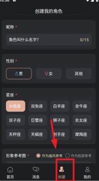 2、选择性别、星座以及虚拟人物特征挑选等。