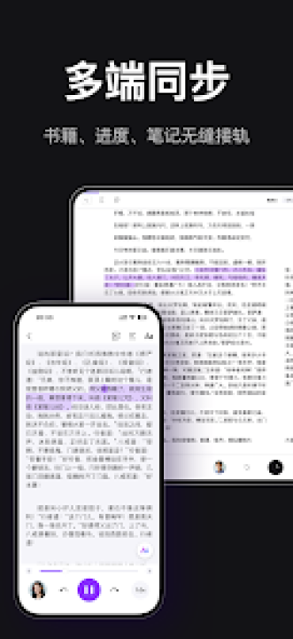 手机开始阅读,电脑继续聆听。Readify通过APP、网页界面和Chrome扩展完美同步您所有设备的阅读进度。